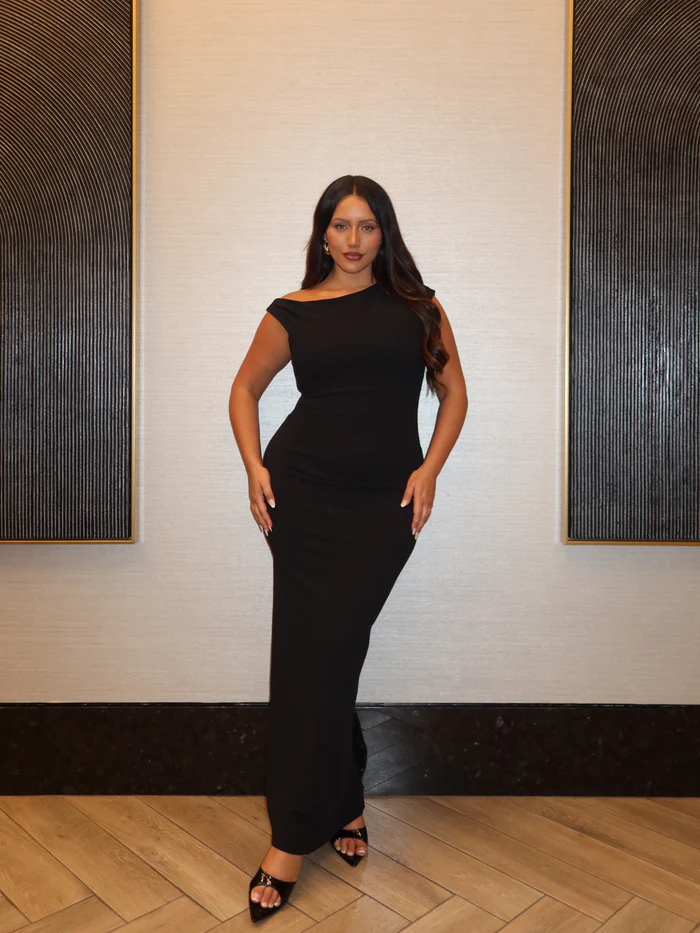 Phoenix Off Shoulder Midi Dress In Black Sequin