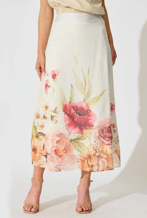 Krystia Dress In Cream With Multi Print With Ric Rac Trim