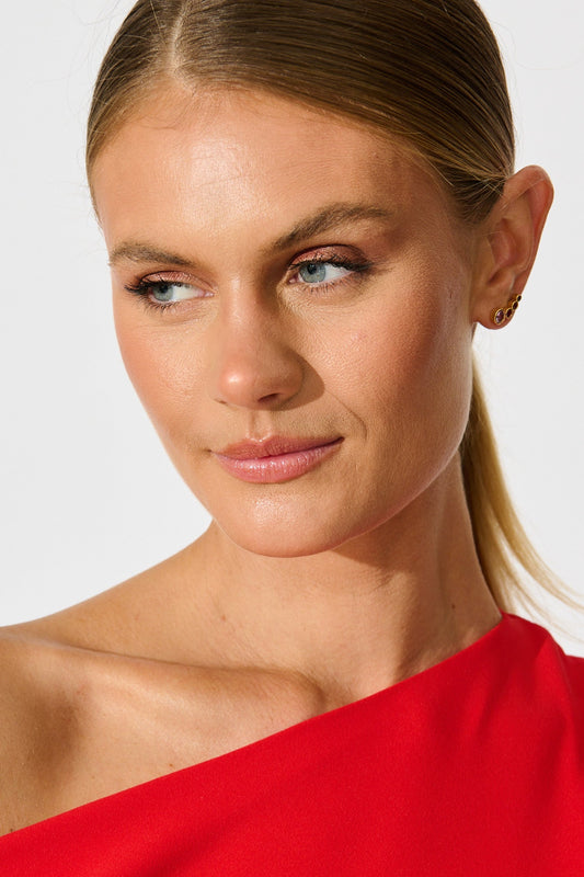 Meteorites Stud Earrings in 18k Gold Plated with Red Multi Stones