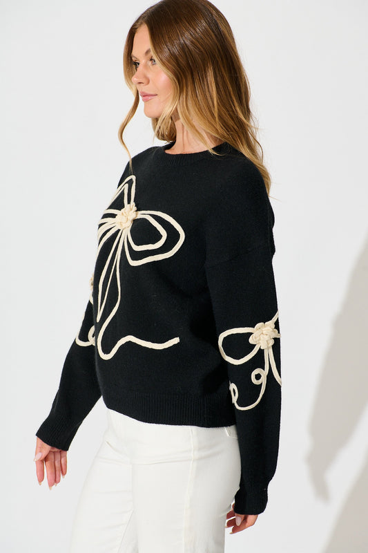 Rosa Knit in Black with Cream Bow Cotton Blend