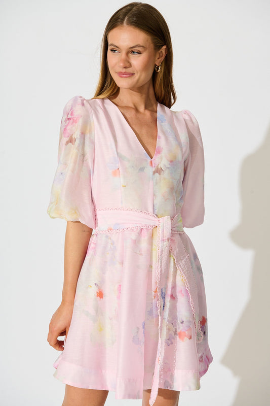 Zora Maxi Shirt Dress in Pink Floral Cotton Blend