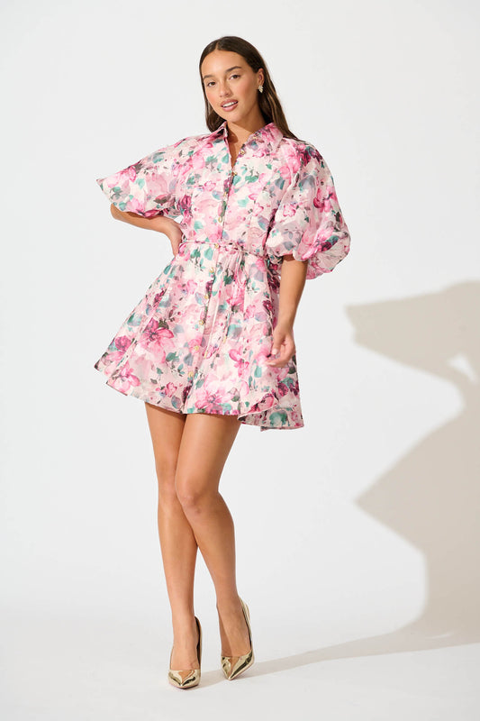 Admirer Shirt Dress in Multi Pink Floral Organza