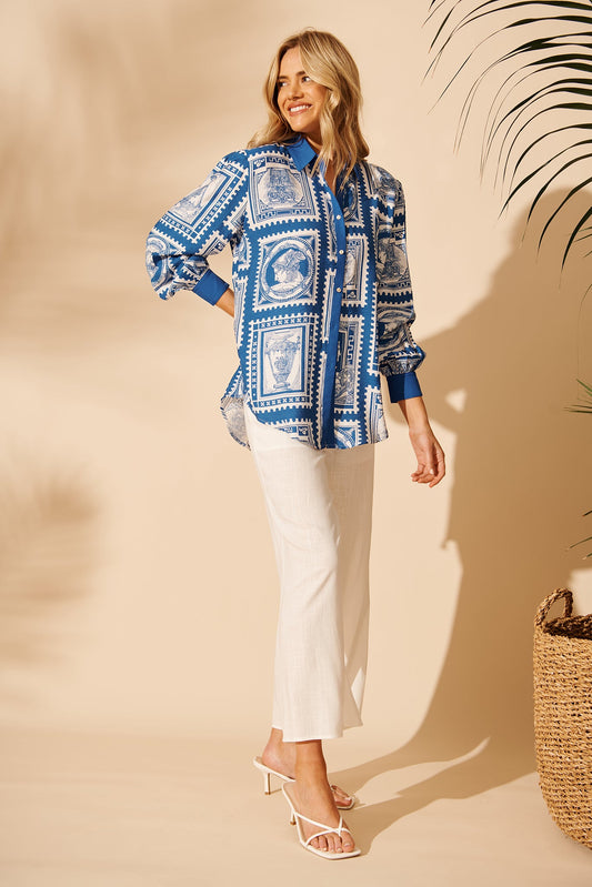 Adler Maxi Sundress in Blue with White Border Print Ric Rac