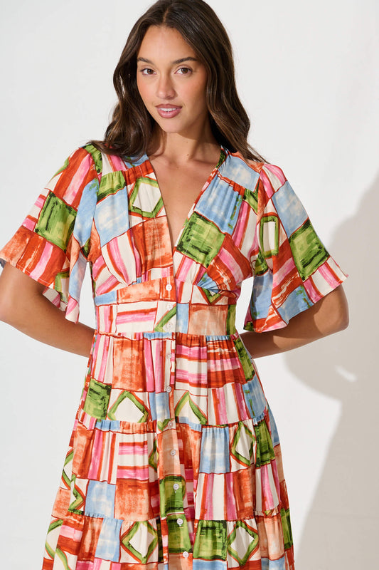 Alaina Maxi Shirt Dress in Pink Floral With White Lace Trim