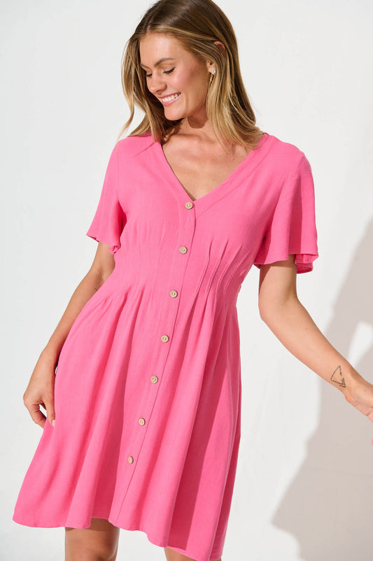 SAVE 59%Amaya Dress in Pink Linen Bend