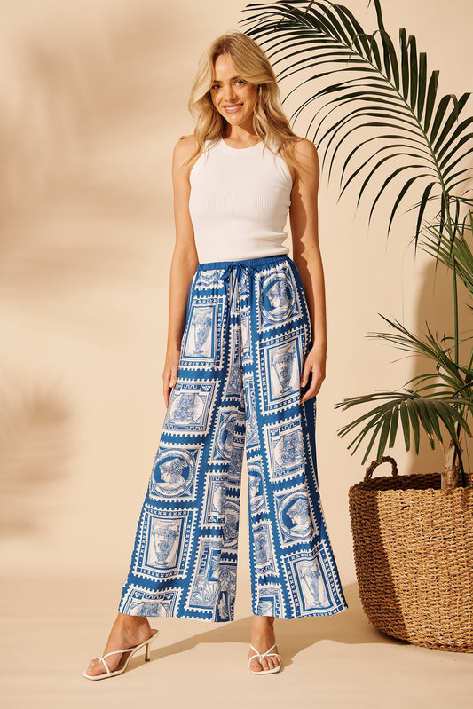 Romeo Pant in Blue with White Stamp Print