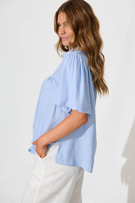 Dream Girl Shirt In White Lemon Print Ric Rac Trim