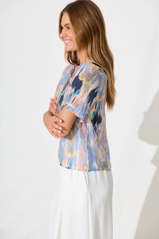 SAVE 69%Downey Top In Blue Multi Print