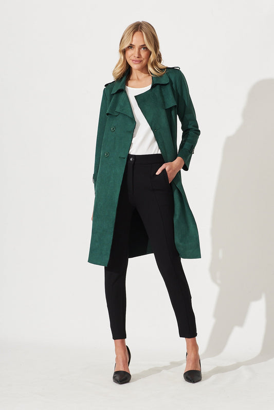 Mirage Trench Coat In Dark Green Suedette