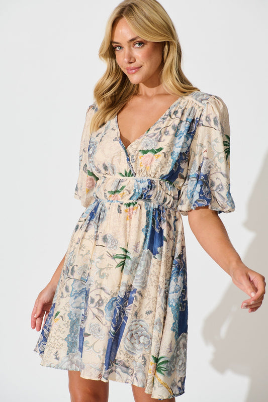 Stargazer Midi Dress in Multi Blue Floral Cotton Blend
