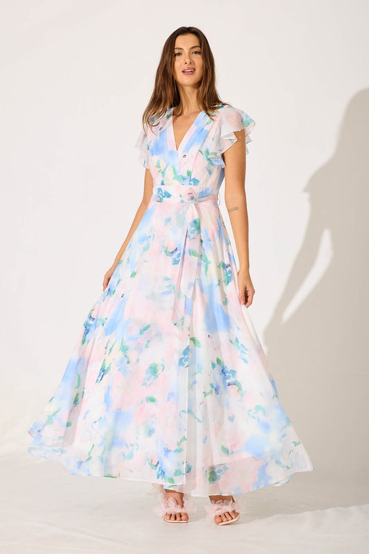 Wynter Maxi Dress In Multi Pastel Floral Chiffon
