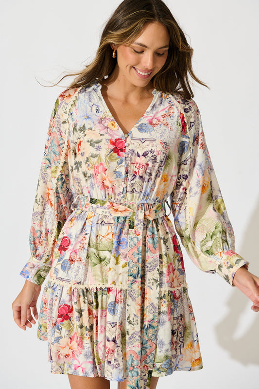 Aveline Shirt Dress In Pink Floral Print Linen Blend