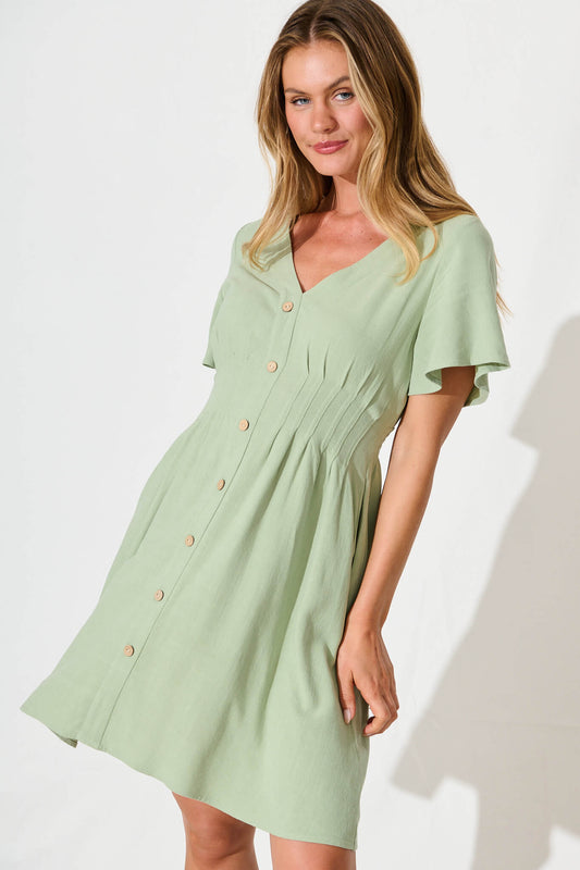 Amaya Dress in Pale Green Linen Blend