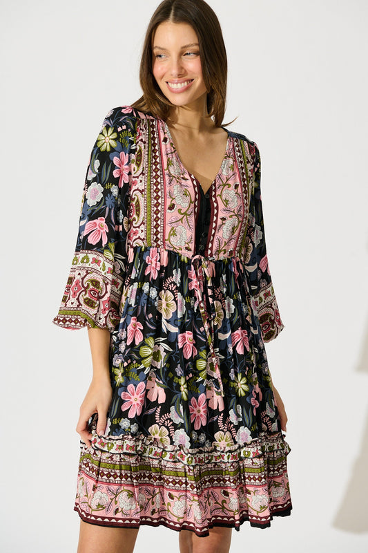The Etched Garden Midi Dress in Black and Blush Patchwork Floral