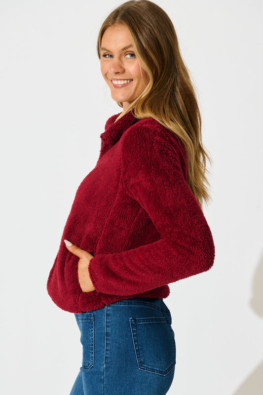 SAVE 59%Kenzie Teddy Bomber Jacket in Wine