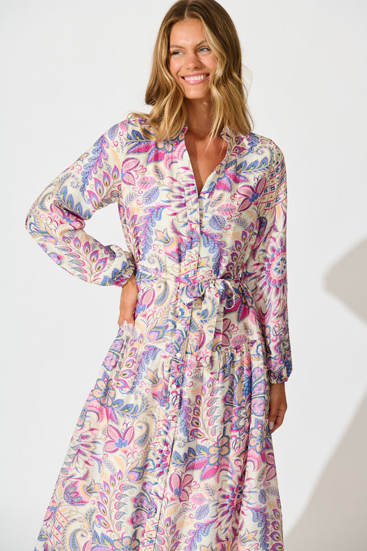 Lovingly Maxi Shirt Dress in Plum Multi Watercolour