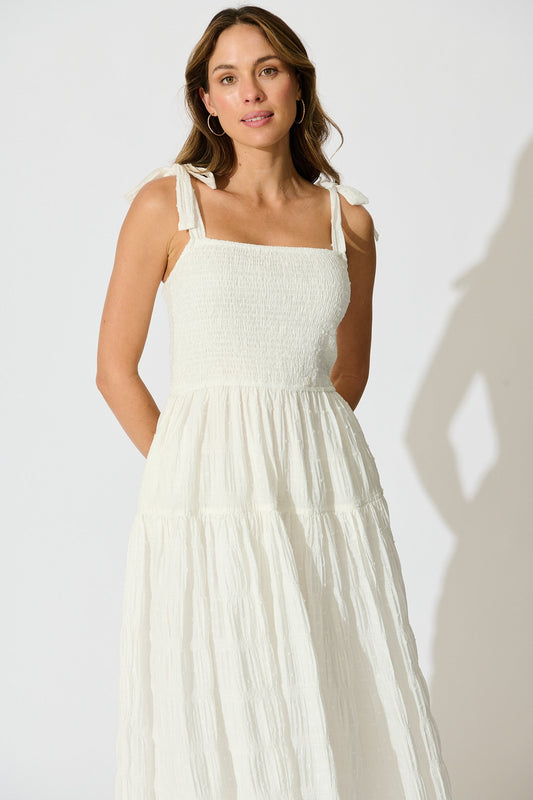 Lila Rea Maxi Sundress in White Swiss Dot