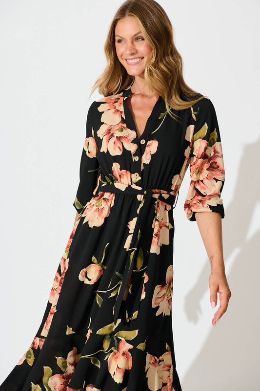 Jemimah Midi Dress In Black with Blush FloralRegular price $51.00Regular price $51.00 Sale priceUnit price per$84.9039%