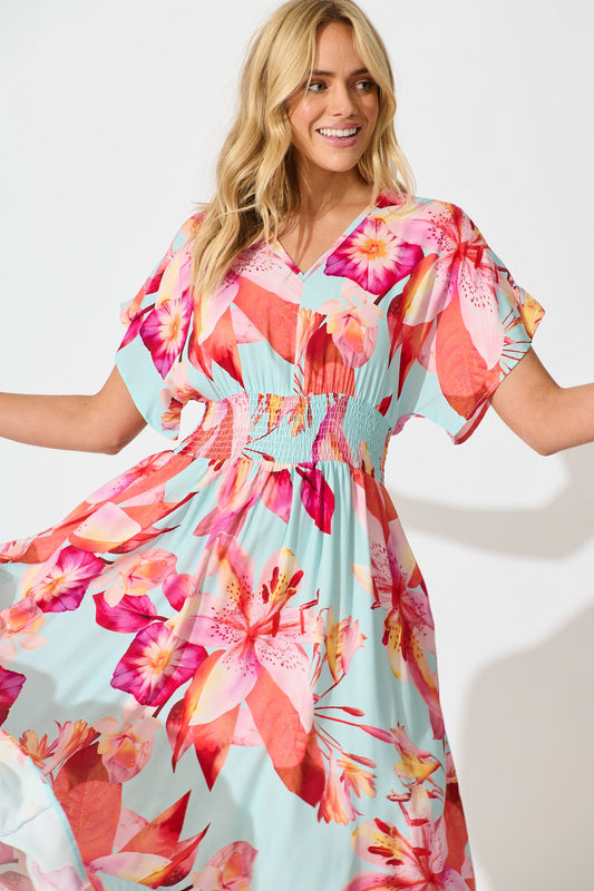 Nola Midi Dress in Blue with Pink FloralRegular price $54.00Regular price $54.00 Sale priceUnit price per$89.9039%