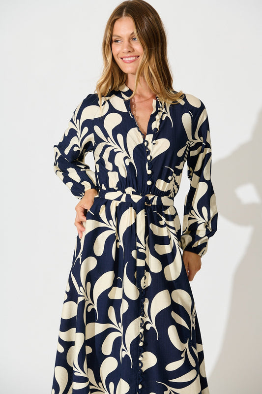 Peyton Midi Dress in Navy with White PrintRegular price $50.00Regular price $50.00 Sale priceUnit price per$99.9049%
