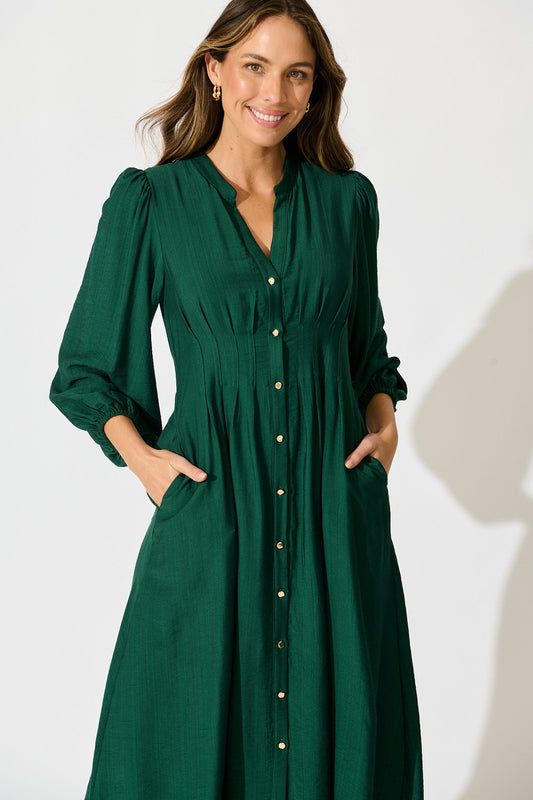 Terri Midi Dress in Emerald with White Contrast Trim