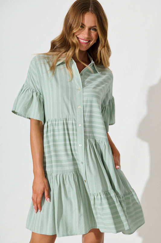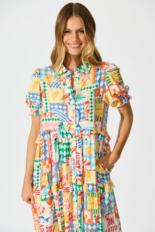 Halswell Maxi Shirt Dress In Green And Yellow Tile Print