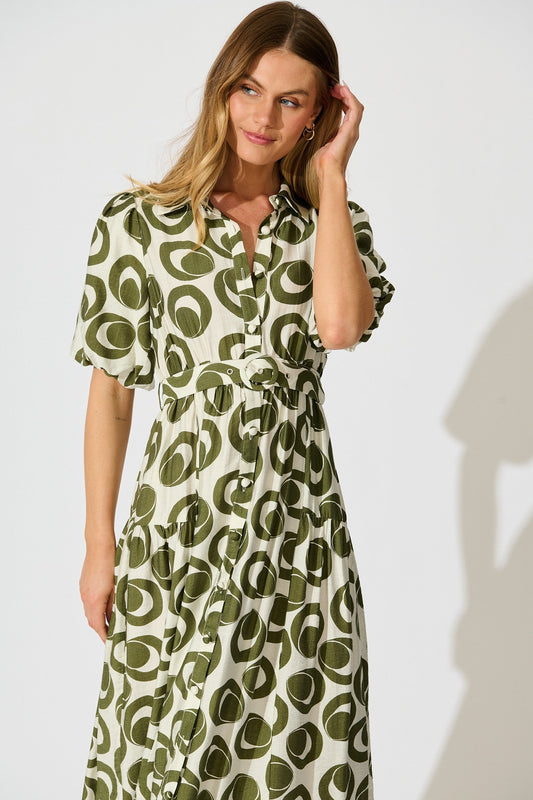 Ayla Midi Shirt Dress In Emerald Embroidered Cotton