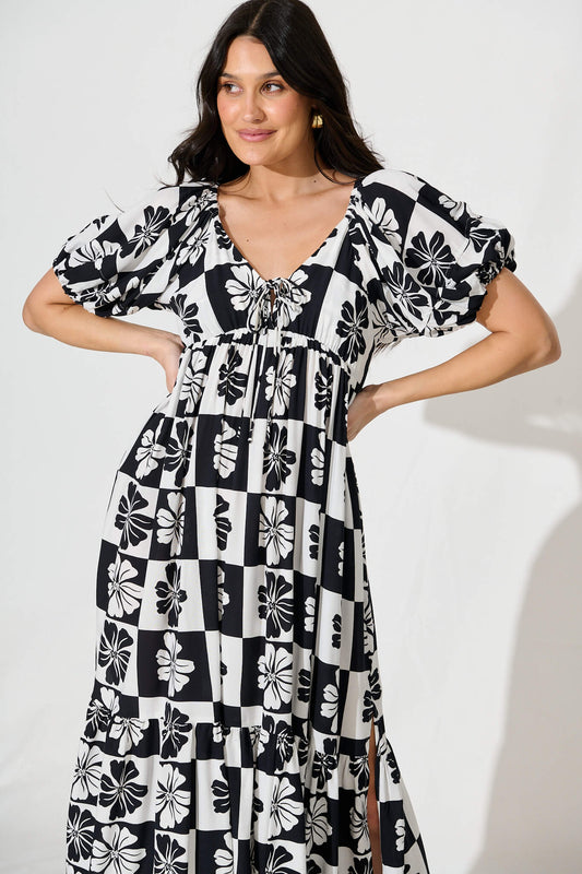Newmoon Maxi Skirt In Navy With Multi Floral Print
