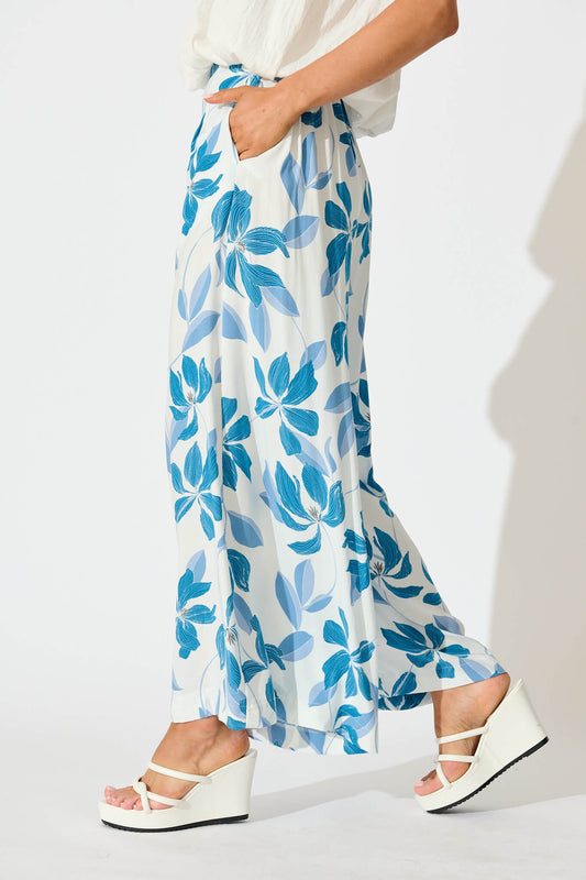 Goldie Wide Leg Pant in Navy and Cream Tile Print