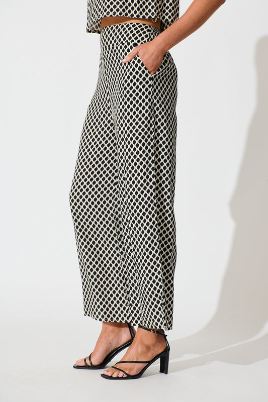 Goldie Wide Leg Pant in Black with Cream Tile Print
