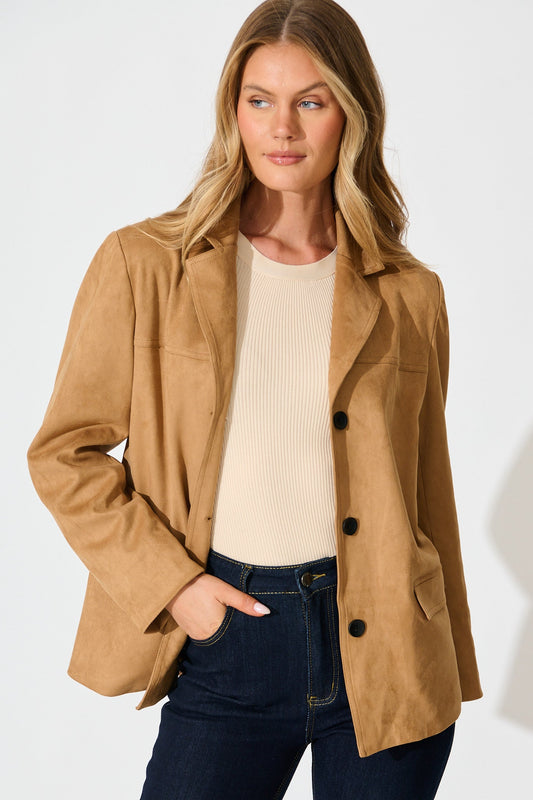 Main Character Blazer in Camel Suedette