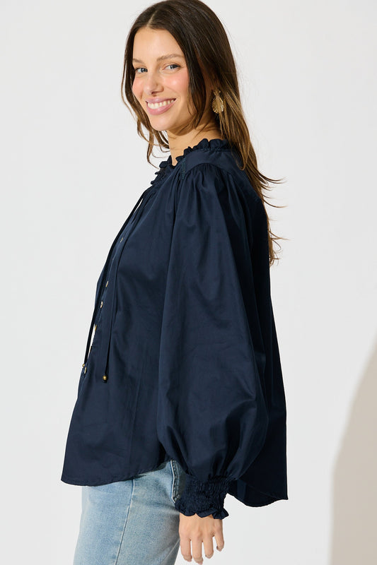 Dotty Days Top in Navy with White Polka Dot Chiffon