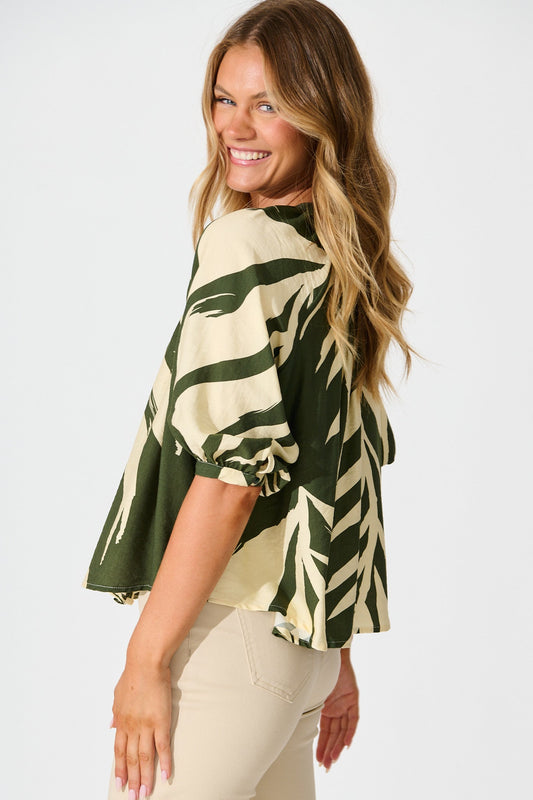 Lost Promises Top in Green Leaf Print
