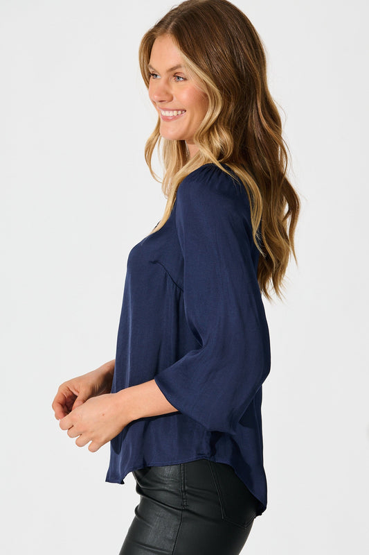 Samarah Knit Vest Top in Navy with Gold Buttons Wool Blend