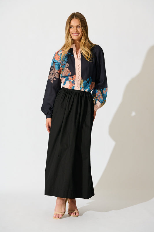 Secret Bloom Blouse Top in Black Multi Floral Linen Blend