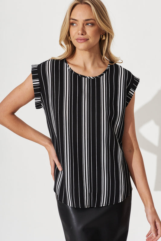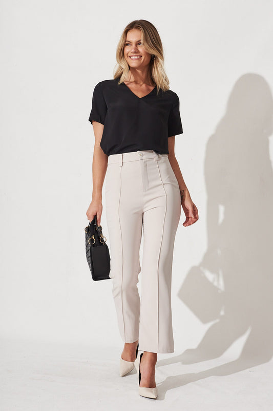 Rejina Top In Black With Blush Floral Bubble Crepe