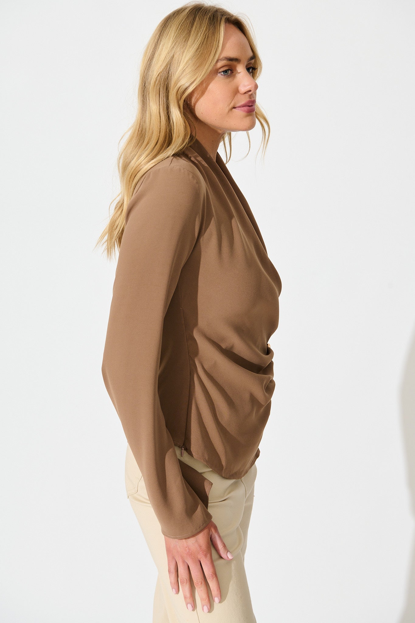Clean and chic, our Desk to Drinks Top will take you from straight from the office to your next dinner date. Made from a lightweight fabric, featuring a flattering shawl collar with gold buckle detail. Team with your tailored trousers and strappy heels for an elegant look.