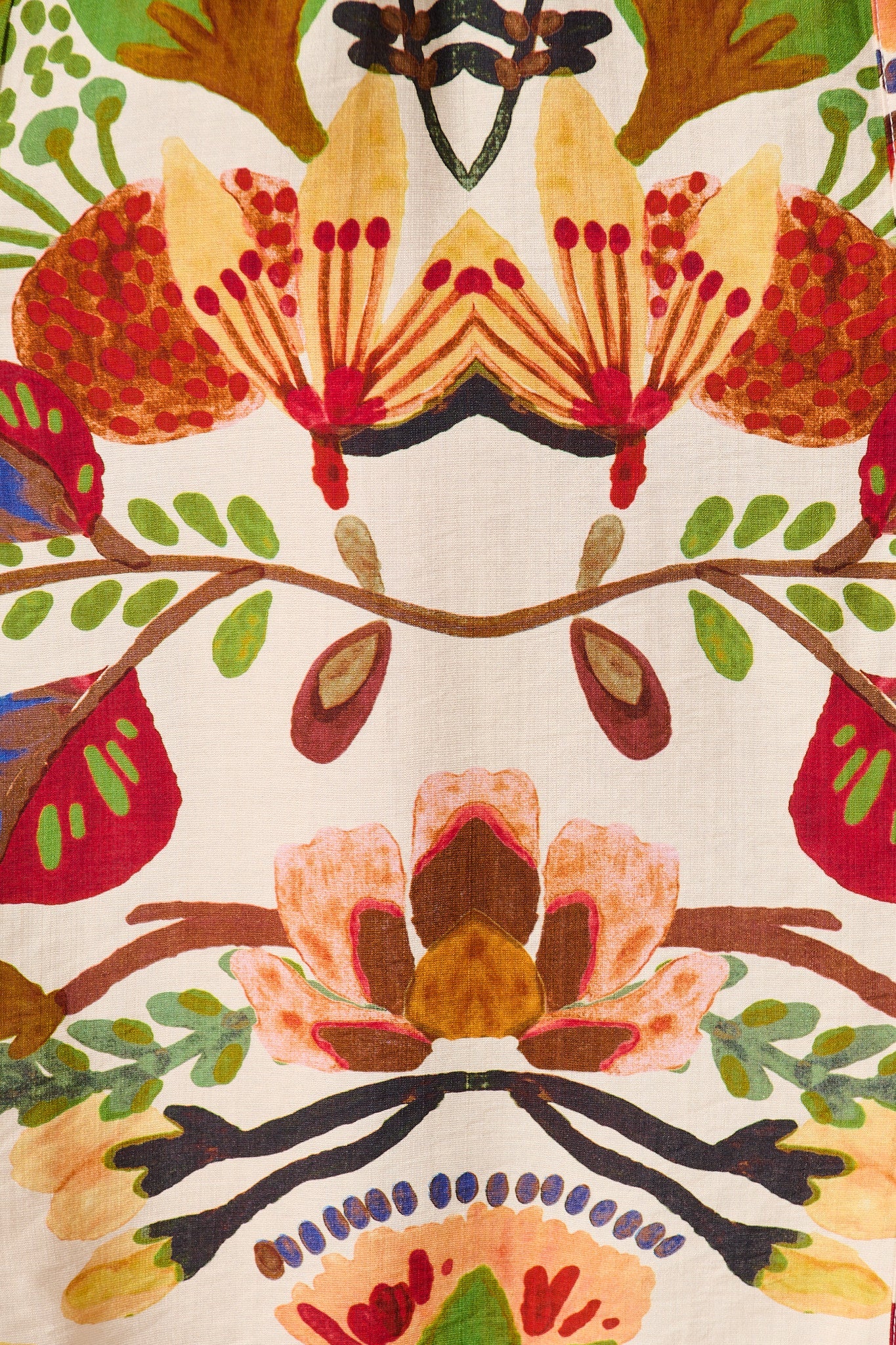 Fields Of Wonder Midi Shirt Dress in Cream with Multi Floral Print