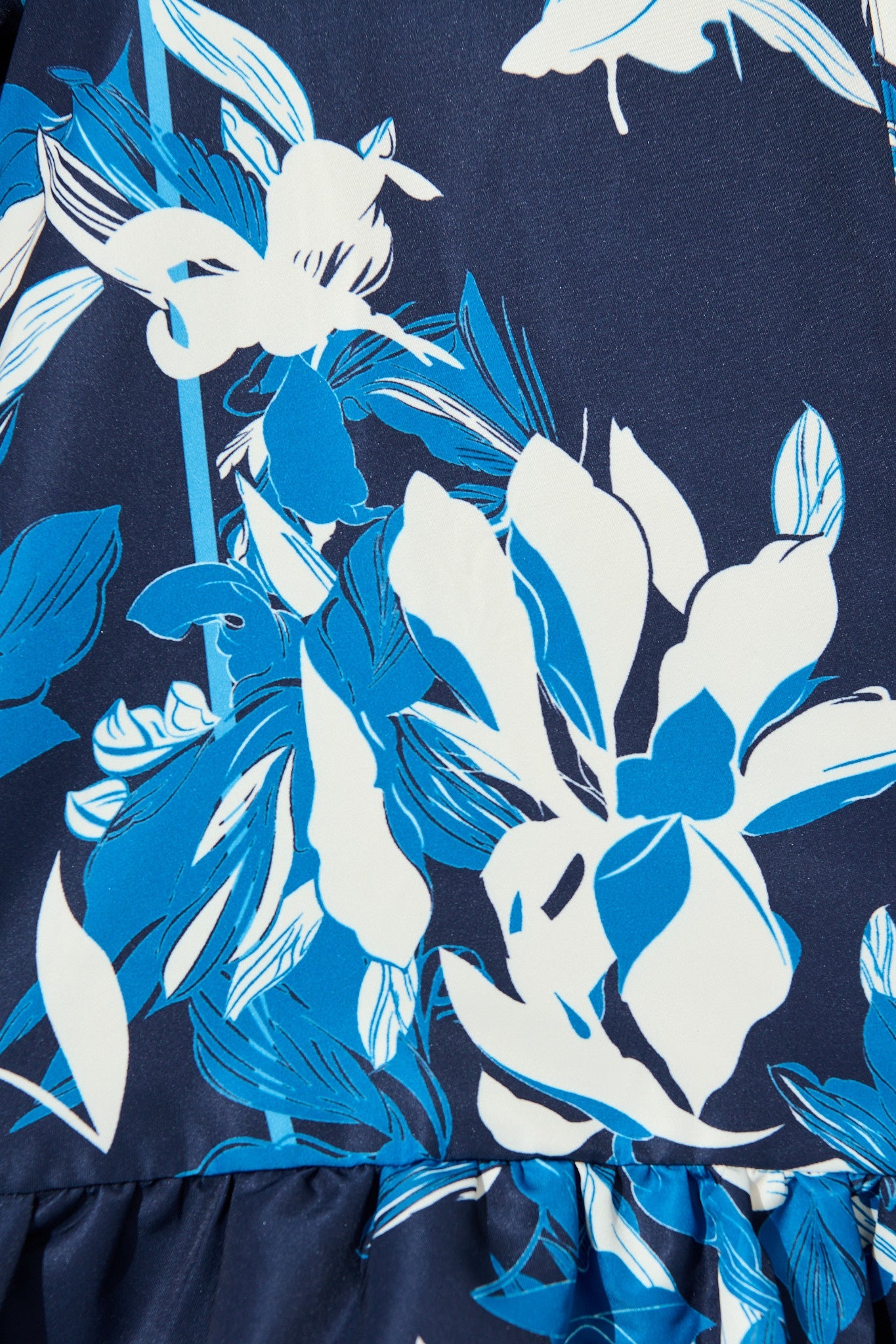 The Fione Shirt Dress in Navy Floral Satin is your perfect plus-one for parties, long lunches, and evenings that call for a touch of polish with plenty of comfort. Its deep navy base is scattered with soft blue florals, giving it a modern, feminine edge that works beautifully from day to night. Crafted from a lightweight, wash-and-wear fabric, this dress is an easy-care piece that looks effortlessly chic every time you slip it on.