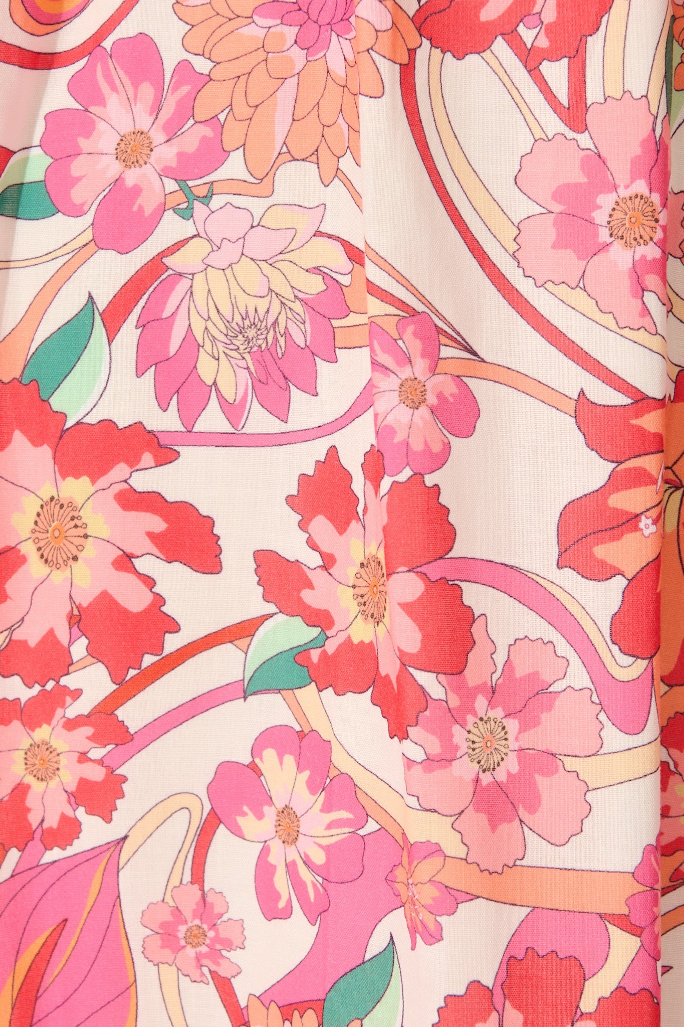 The Grazia Maxi Sundress in Cream with Pink Multi Linen Blend is soft, sunlit and summer-ready. With its floral placement print and flattering fit, it's a go-to for warm-weather occasions or beachside brunches.