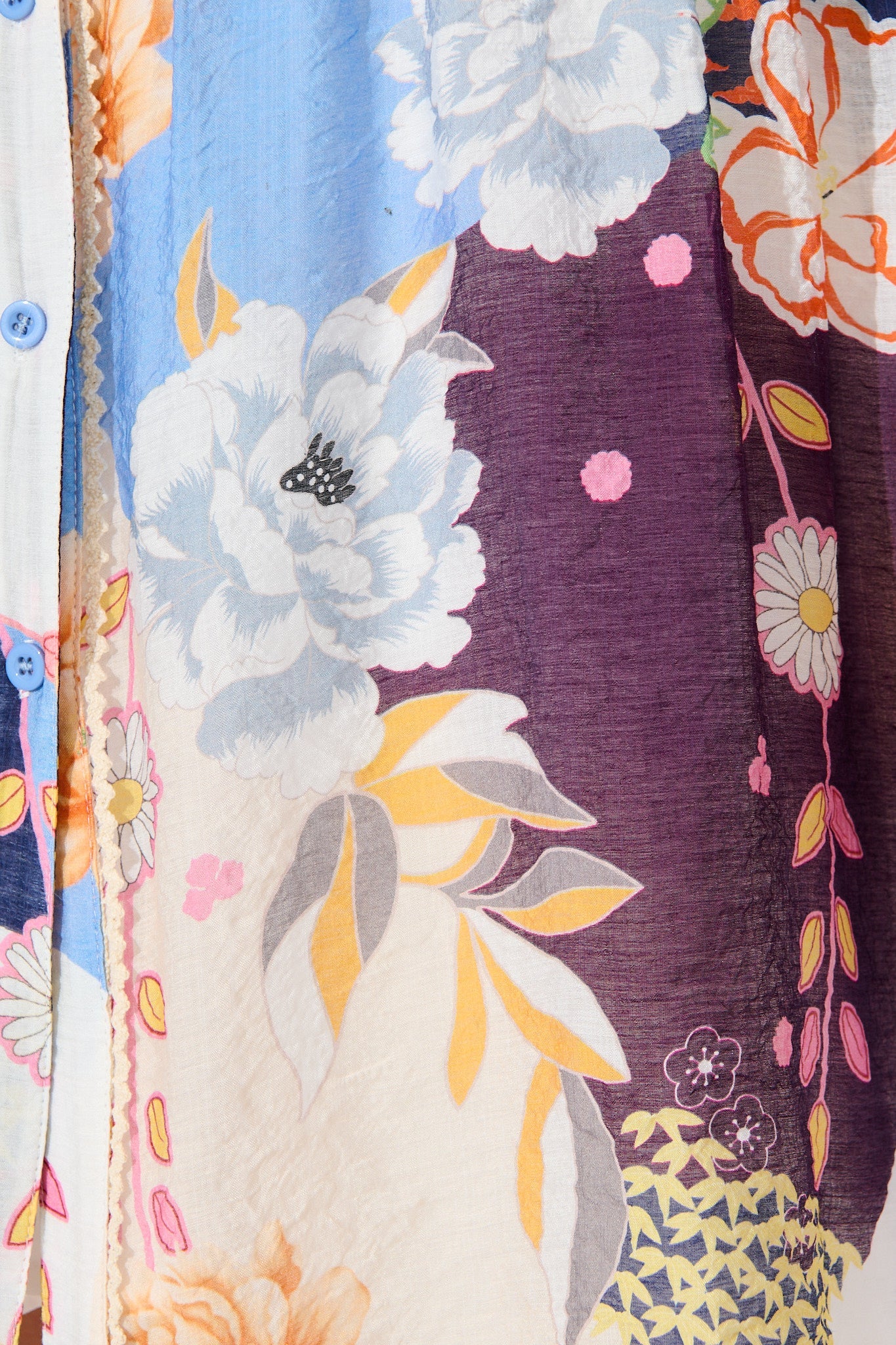 - Lace trimming placket and collar