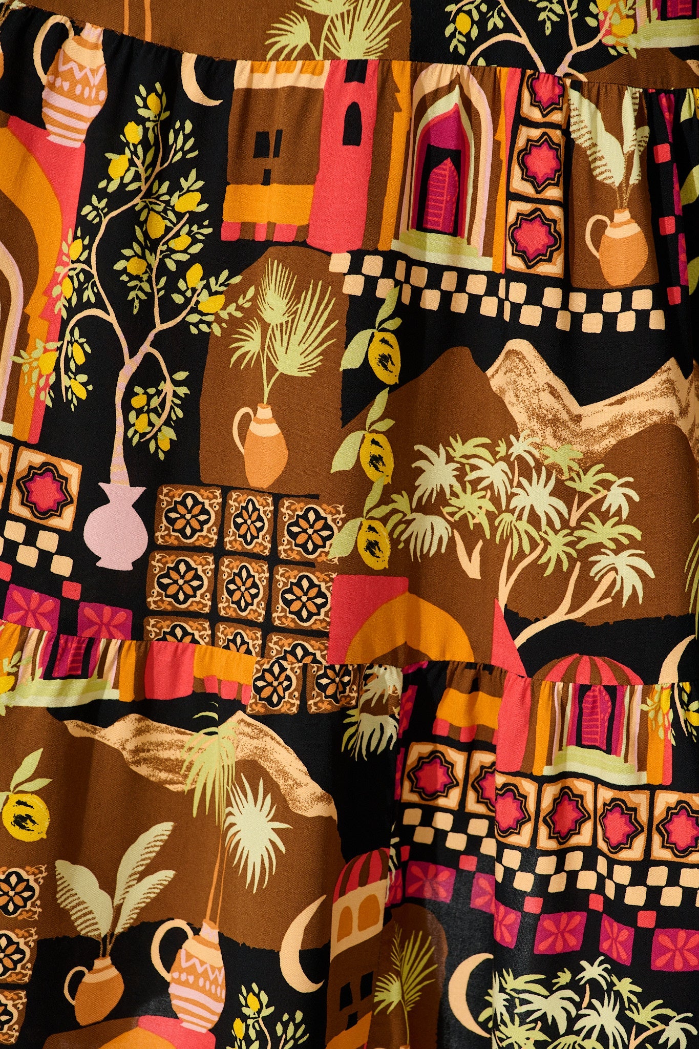 Make our Laconia Midi Dress your newest addition to your wardrobe! Features button front, V-neck, plastic button, tiered skirting, drawstring waist tie, twin side pockets and ric rac trim. Perfect for all your daily activities!