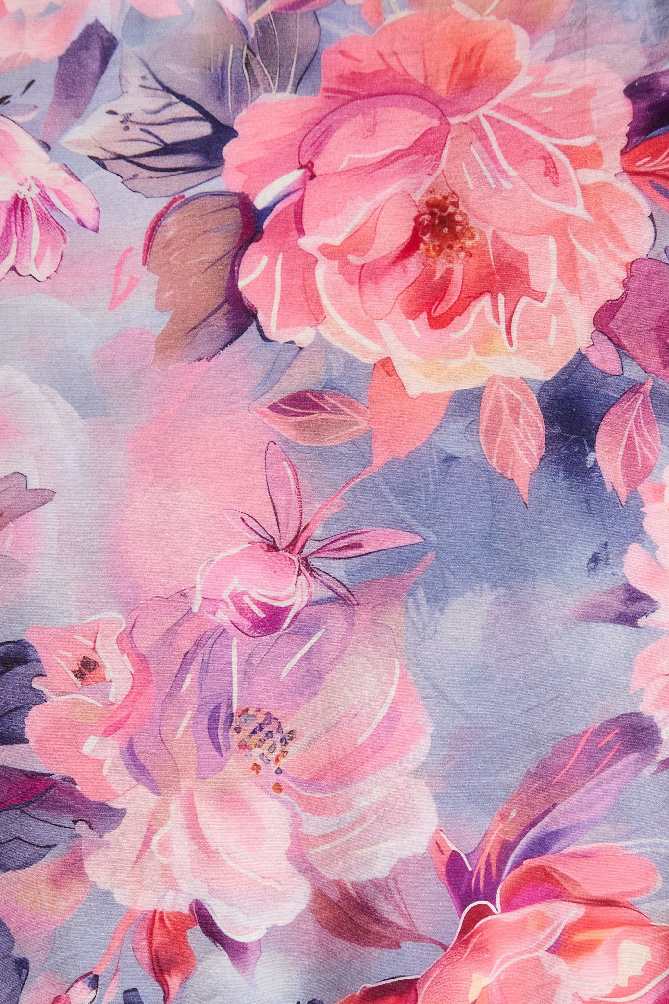 Laylah Midi Dress in Blue with Pink Floral Cotton