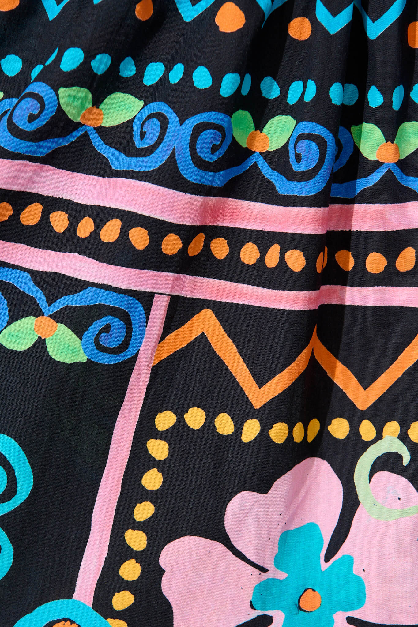Mahonia Smock Shirt Dress In Black With Multi Cotton