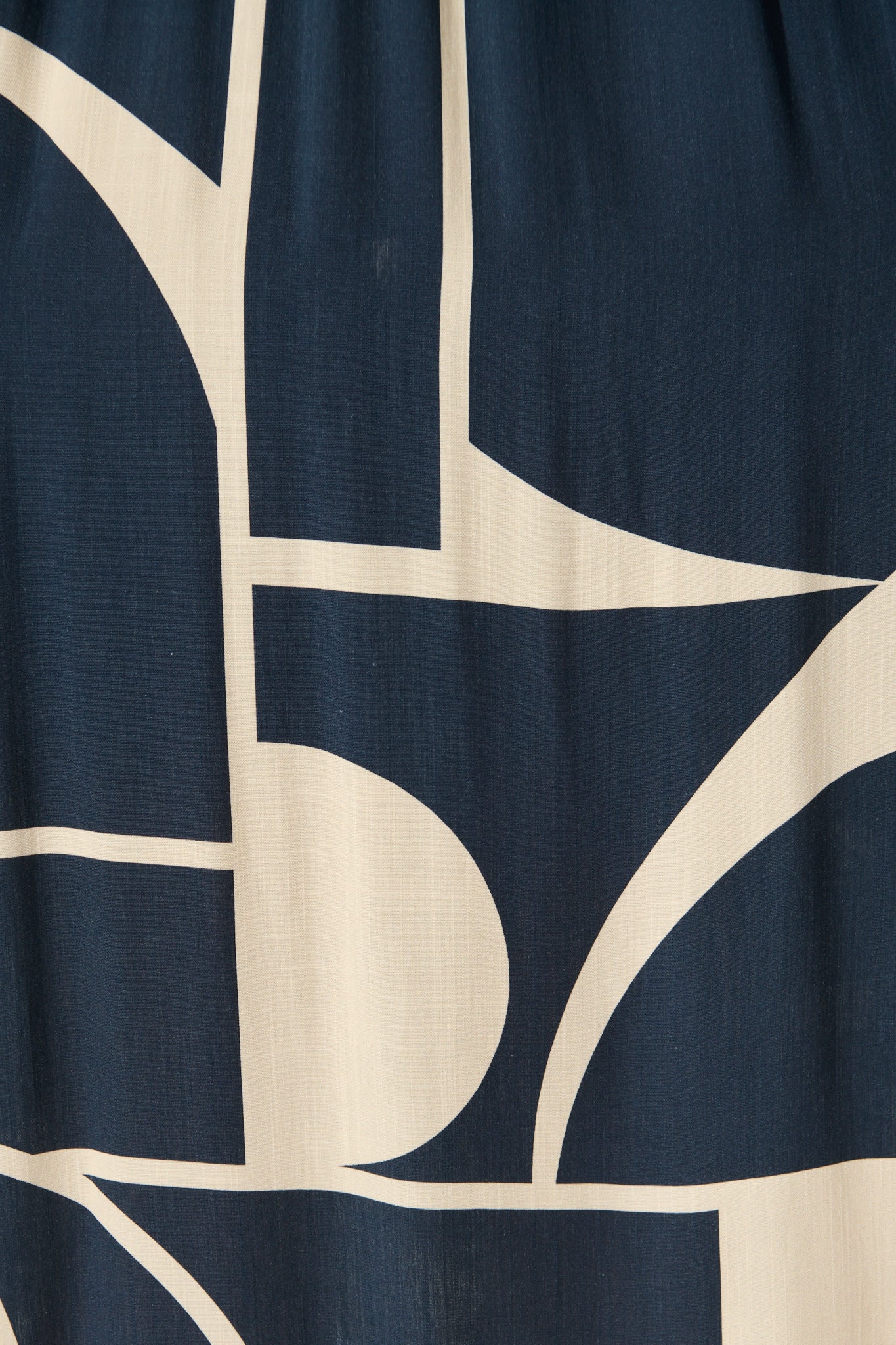 Marlee Midi Dress in Navy with Cream Geometric Linen Blend