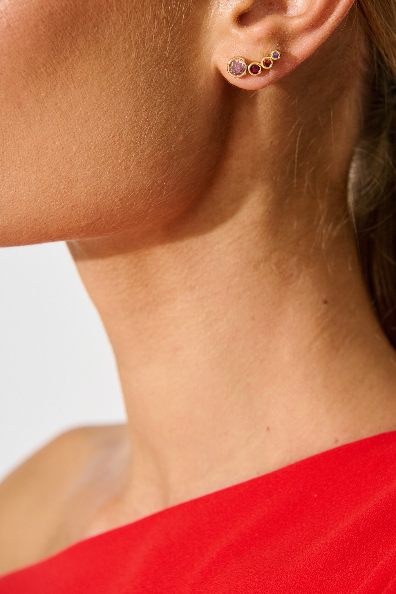 Meteorites Stud Earrings in 18k Gold Plated with Red Multi Stones