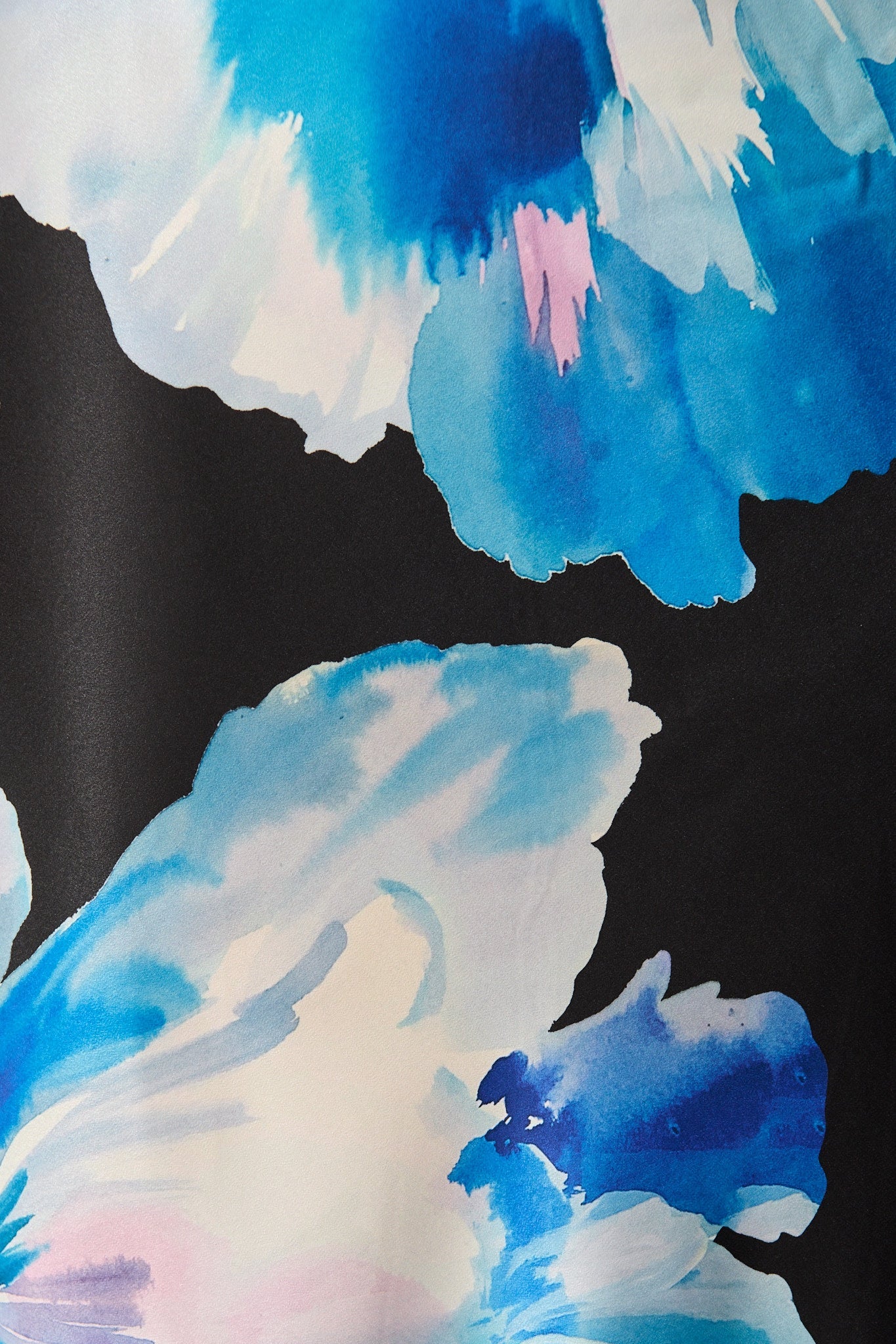 Nightshade Bouquet Maxi Skirt in Black with Blue Floral Satin