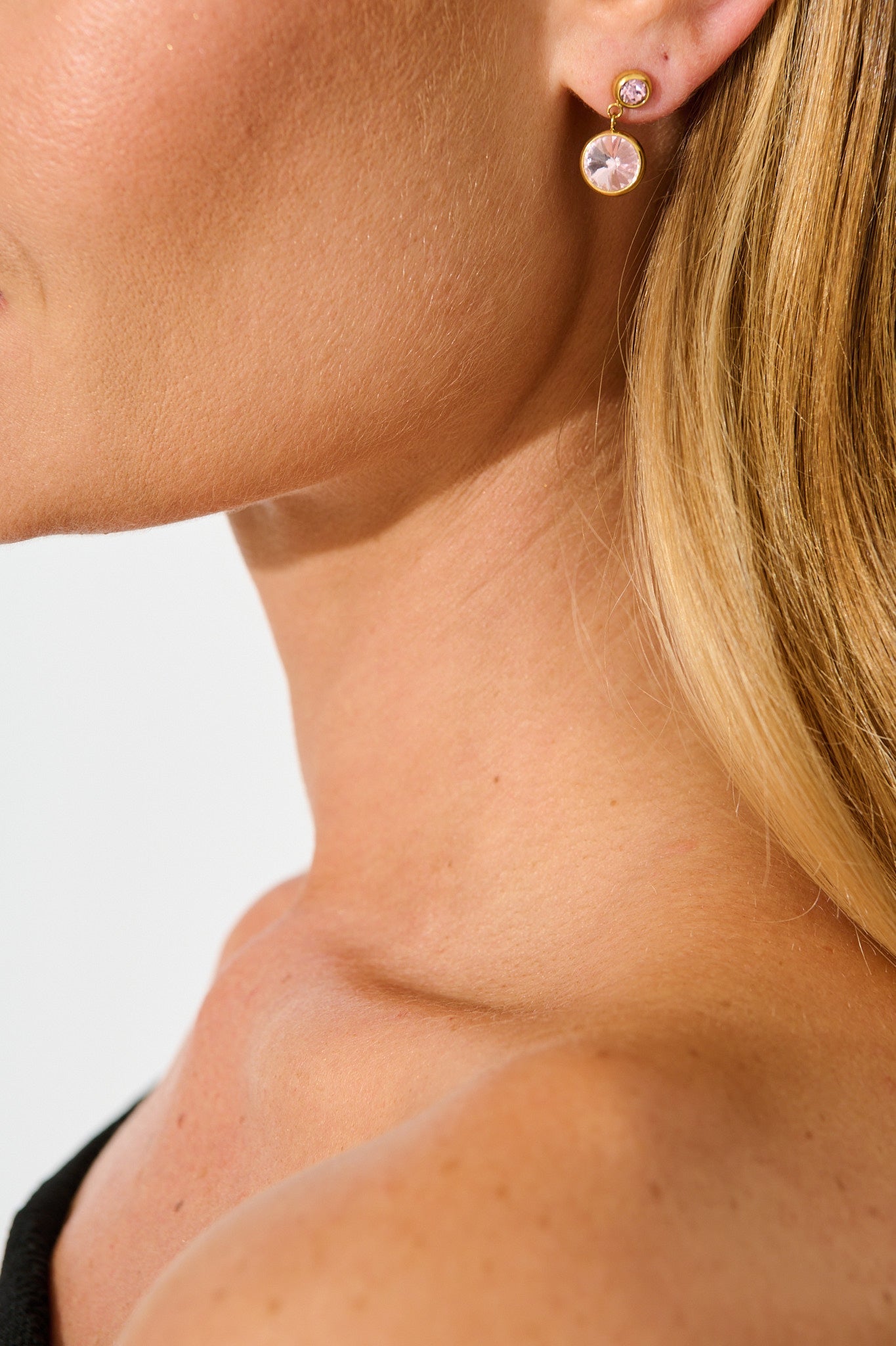 Nina Drop Earrings in 18k Gold Plated with Blush Stones