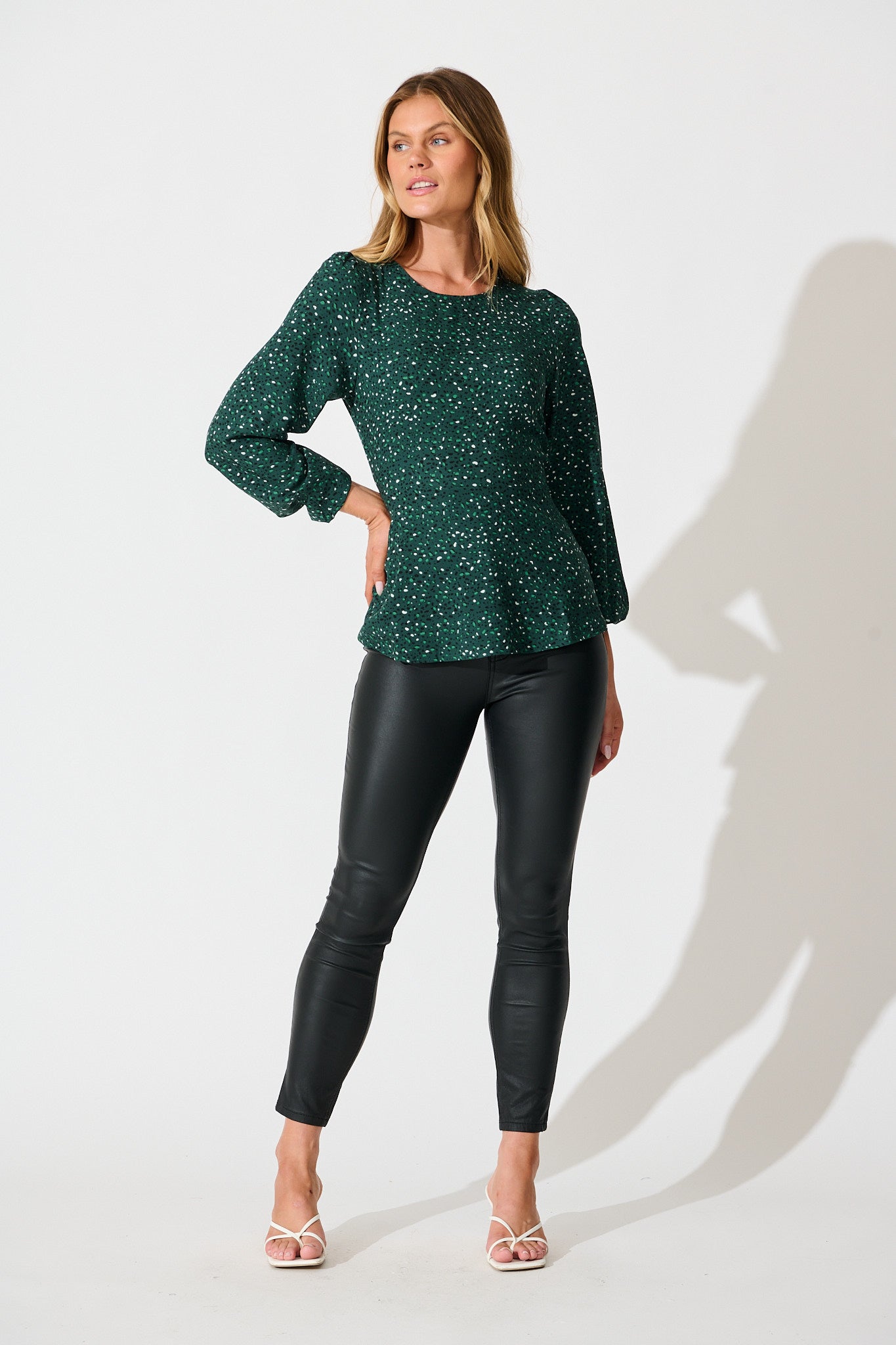 Petra Top in Emerald Multi Spot Crepe