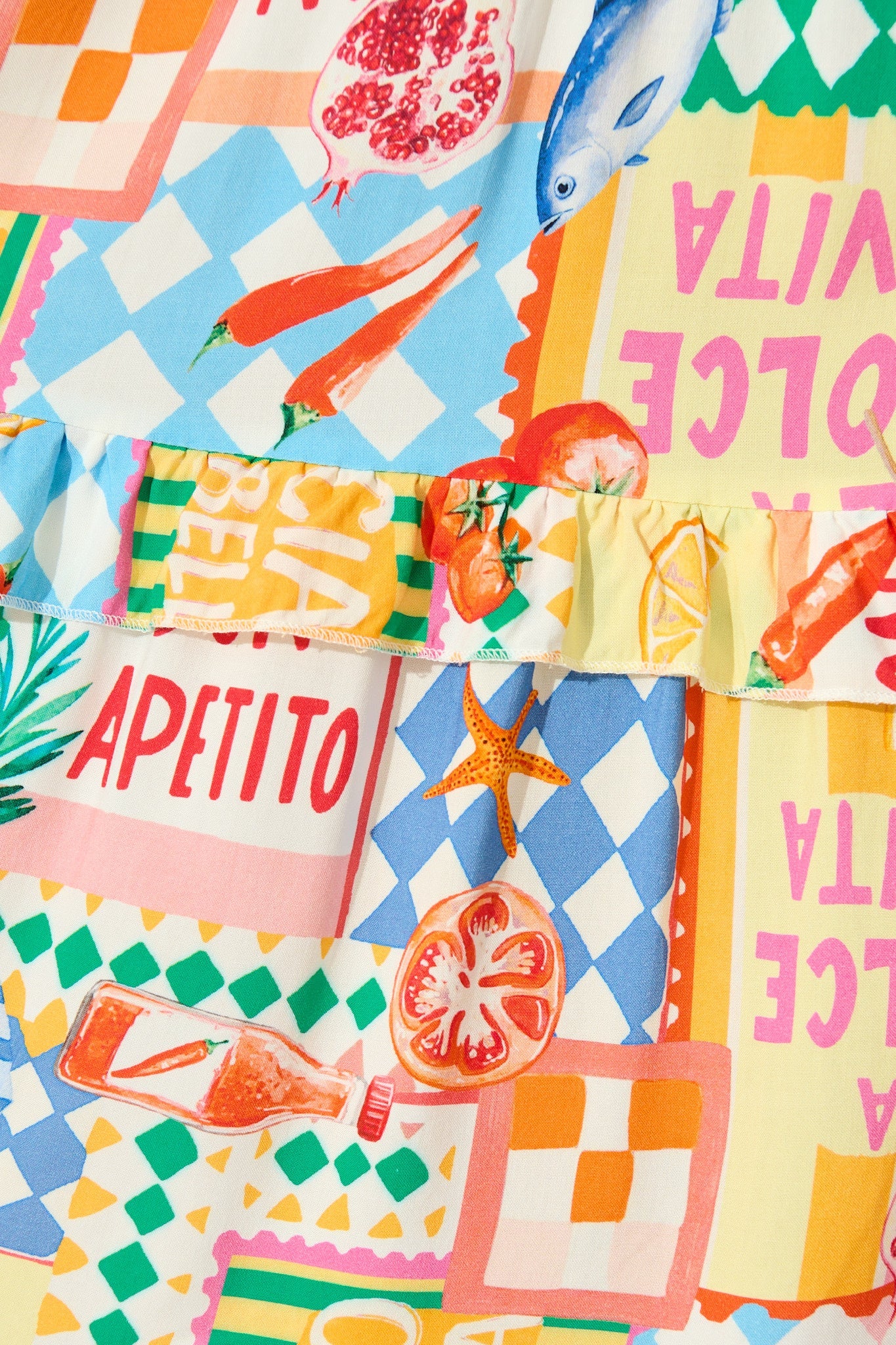 Crafted from breathable rayon, the lightweight fabric floats over your body with ease. A collared neckline and full functional button front keep the look classic, while the tiered skirt with ruffle detail brings playful movement and feminine flair. Short puff sleeves are finished with elasticised cuffs, and hidden side pockets keep it practical without compromising the silhouette.